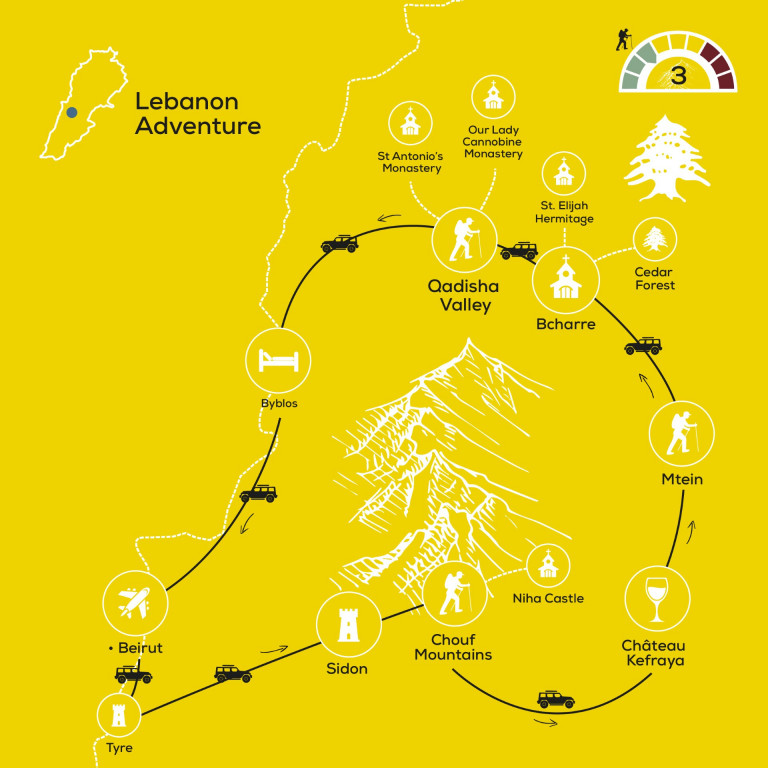 This adventure captures all the must-see destinations that Lebanon has to offer, whilst incorporating some short walks along the Lebanon Mountain Trail (LMT) through cedar forests, the Chouf Mountains and the Qadisha Valley to also experience the sights, sounds and smells of this beautiful country on foot. From the Mediterranean to snowy mountains to the vineyards of the Beqaa, join us as we stay in traditional Lebanese homes, enjoy the world-famous cuisine and bustling nightlife of Beirut.