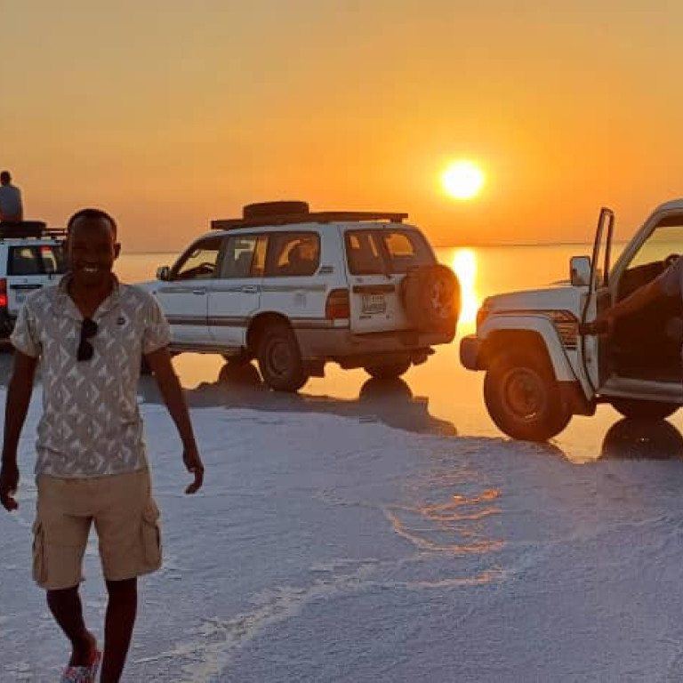 Experience the early morning sunrise in this strange land, exploring the various different craters of the volcano. Descend to your vehicle walking about 30 min after breakfast, then drive to reach the mythical Lake Giulietti (or Lake Afrera), a salt water lake located more than 100 meters below sea level, in one of the deepest depressions of the planet. Because of the picturesque landscape, it is interesting to visit the salt flats where the Afar people obtain the salt by evaporating the water of the lake and proceed Hamed Ela.
