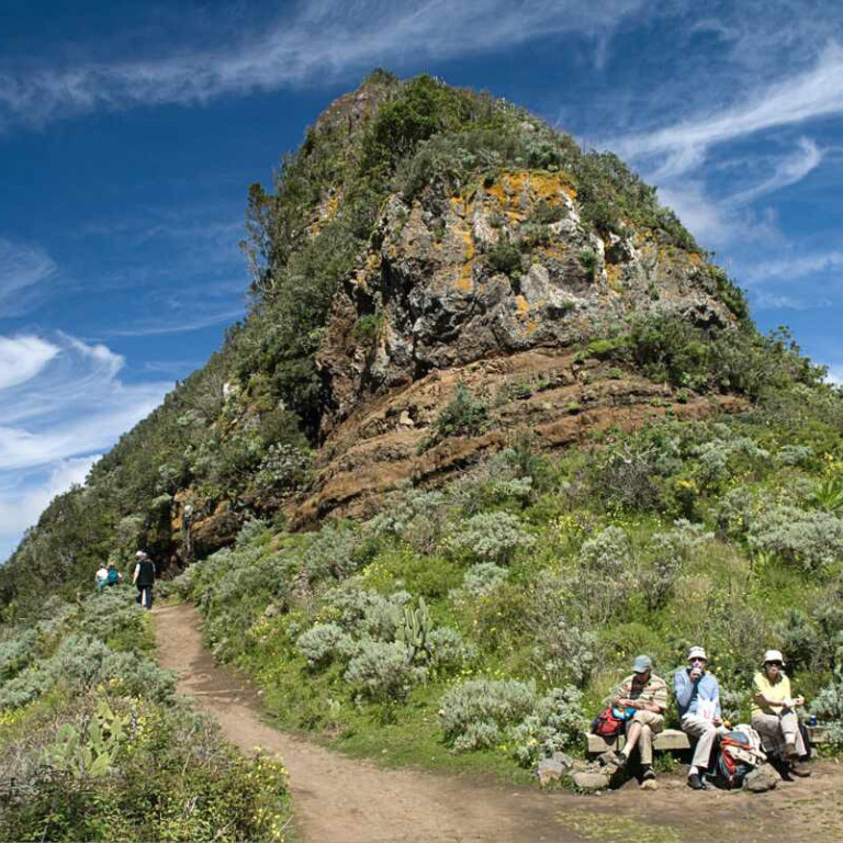 Todays hike takes a path where the trail gently winds its way amidst the captivating landscape adorned with twisted trunks and towering ferns. Descend steadily to reach El Cedro, a quaint village of just seven rustic dwellings nested in the laurel forest. Pause for a short break at the Las Vistas inn, then resume your descent through the enchanting El Cedro ravine. Your journey culminates in Hermigua, a picturesque northern village steeped in agricultural heritage, renowned for its claim to "the world's finest climate."
