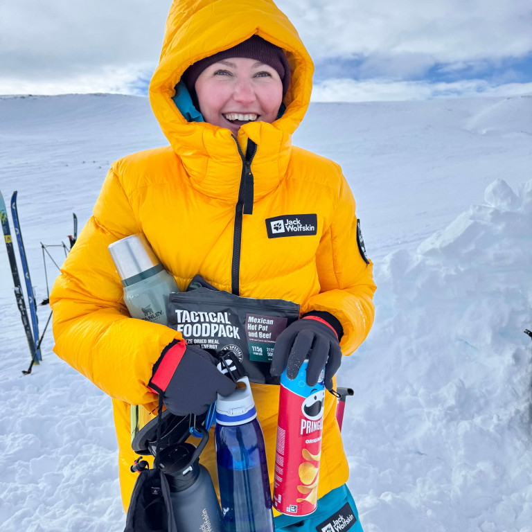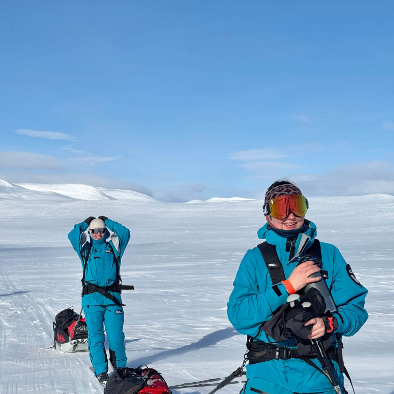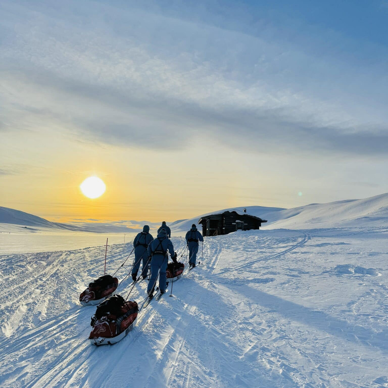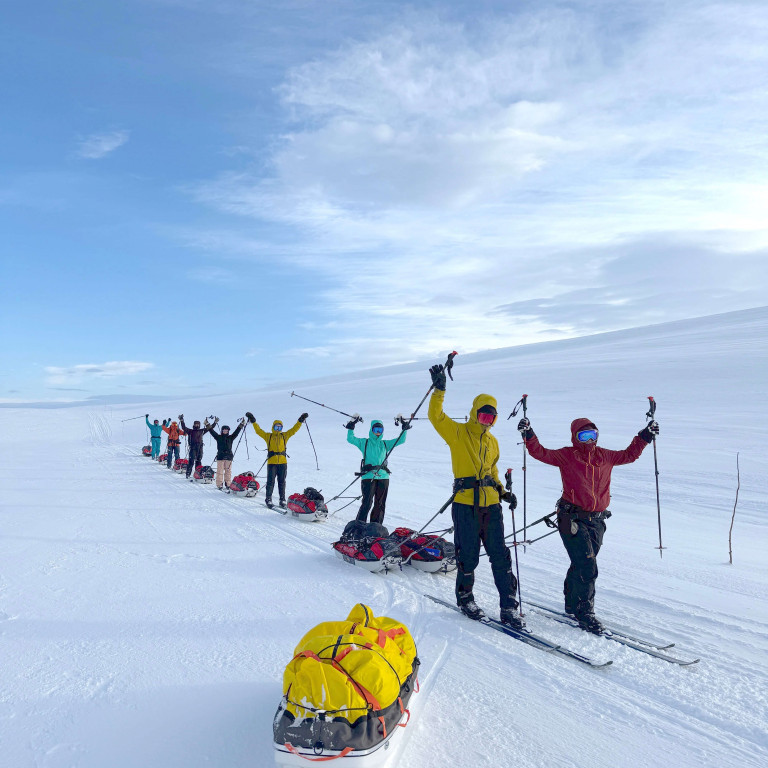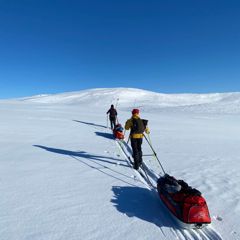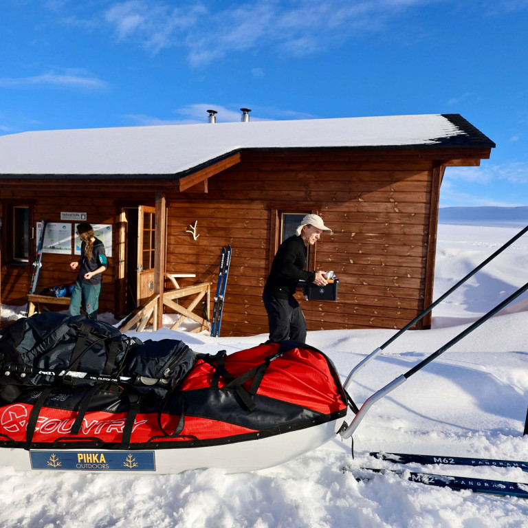 This tour is designed as a beginner-level Arctic ski tour, and no prior cross-country skiing experience is required. While extreme fitness isn’t required, good physical condition is essential for this cross-country ski tour. We are sure you’ll learn to ski in a day. The physical effort is roughly equivalent to hiking 10 km with a 15 kg backpack. While the terrain isn’t extremely steep, the snow conditions can vary significantly. Hard-packed snow makes for an easy day; deep, fresh snow makes pulk travel slower and more strenuous.