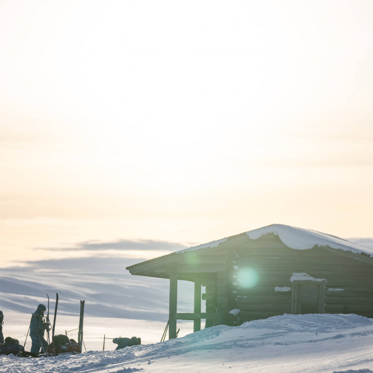 Each day brings a new dimension of the wilderness: the raw ascent to panoramic summit views, the descent into silent valleys, and the slow, mindful rhythm of skiing off-trail where no one else goes. Nights are spent in simple but atmospheric wilderness huts without electricity or running water, but rich in warmth, purpose, and connection. Watch the skies for the Northern Lights, and the snow for signs of reindeer, wolverine or arctic fox.