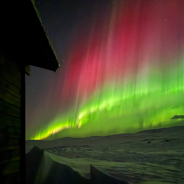 We sleep in very basic, shared wilderness huts with no electricity or running water. This is truly a back-to-basics style accommodation. Drinking water is melted from snow and a wood stove heat the huts. After dark you’ll have a good chance of witnessing the Northern Lights, which appear statistically every other night this far north. Of course only if the sky is clear and you’re patient.