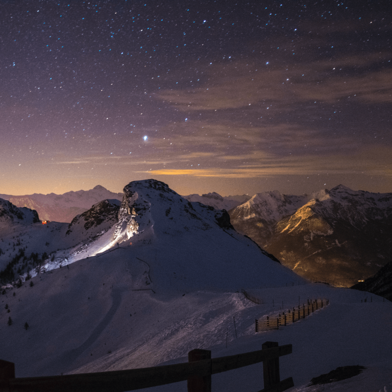 In the evening snow mobiles will collect you from the chalet and whisk you through the snow covered mountain to an isolated mountain restaurant, to feast on a locally sourced Italian meal before a night time snowmobile ride home in the dark.
