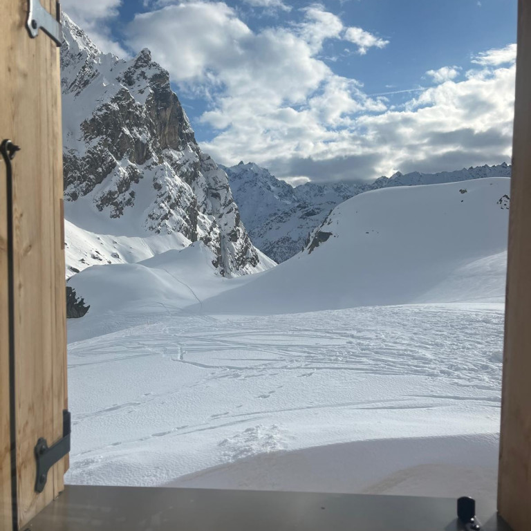 A short private transfer up to the picturesque Col du Lauterat, we start our snowshoeing experience. Walking up through the snow covered wilderness, we will climb up to the Col du Galibier. Most famous for its annual feature role in the Tour de France as it’s most picturesque mountain pass. Your guide will educate you on the local wildlife and history. As you reach the pass, you will discover isolated and ‘snowed in’ Refuge du Galibier. You will receive a warm welcome and delicious locally sourced lunch with the most amazing views back down the Valley.