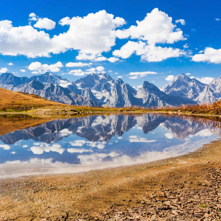 After breakfast we will take 4WD cars to Jvari Point (2170m) and start our walk to Koruldi Lake. On the way, enjoy views of countless summits and glaciers, as well as the gigantic mountains arising out of each other: Tetnuldi (4,800 m.), Laila (4,008 m.), Chatini (4,012 m.), Banguriani (3,838 m.). On arrival at the beautiful mountain lakes, admire the spectacular 360 degree panorama view of the Greater Caucasus.