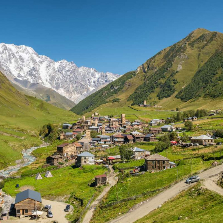 This morning, we drive to the highest permanent village in Europe - Ushguli (2200m). Ushguli and generally the whole Upper Svaneti region is a UNESCO World Heritage Site, which is famous for its abundance of watchtowers. We will visit the 12th century complex of Lamaria and wander the twisting ancient alleys between houses. Our adventure continues, driving towards Mt. Shkhara where we will walk to the foot of the mountain.