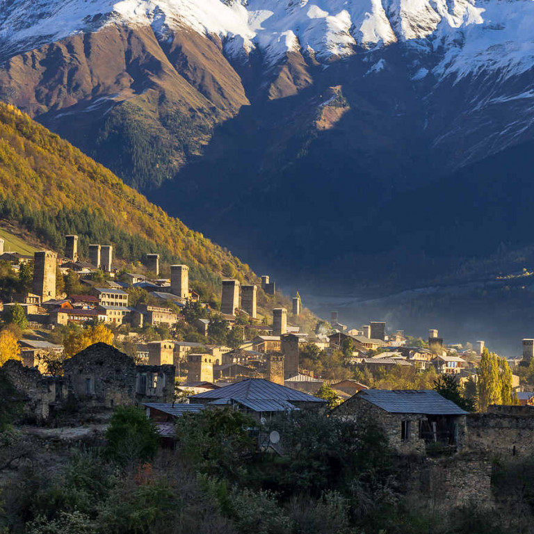 With energy restored, we can now head to Svaneti to visit the Greater Caucasus, the mountain range which offers breathtaking dramatic views and is the natural land border to Russia. Svaneti is home to snow-covered glaciers, towers from the Middle Ages and beautiful waterfalls and lakes. We will stay in a family-run hotel in the village of Becho, located at the foot of Ushba Mountain (4700m).