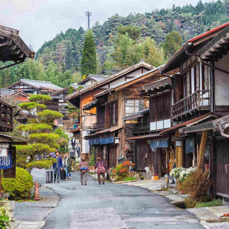 The Kiso valley runs alongside the mountains of the Central Japanese Alps. An ancient trade route, running 70kms along the valley, served as an essential means of commerce, particularly at the start of the Edo Period when it was joined to other local trade routes to form the 500km long Nakasendo ("path through the mountains"). This route offered an effective alternative for trade between Edo & Kyoto, to the coastal path (the Tokaido). Due to restrictions by the shogunate, in ancient times travellers were almost always forced to make their trips on foot, so every few kilometres 'post towns' popped up to provide accommodation and sustenance. A few towns in the valley, particularly Magome & Tsumago, have been preserved to look as they did when the served travellers, with stone paths and wooden buildings taking you back to a bygone era.