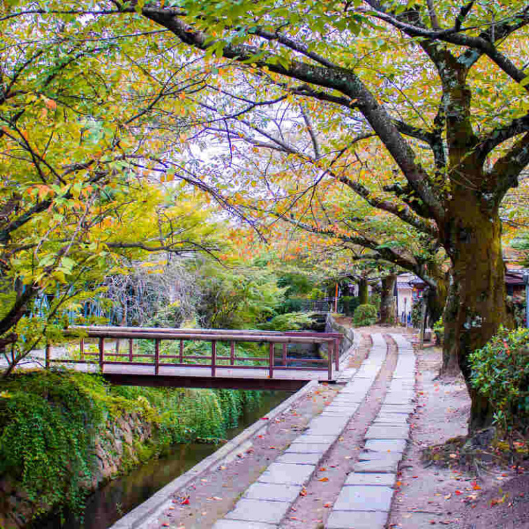 At the foot of the mountain lies the Ginkakuji ("Silver Pavillion"), one of the most exquisite zen temples in the city (entrance included), and a former retirement villa of a shogun before it was converted into a temple in 1492. As well as the main pavilion, there are half a dozen other temple buildings, a beautiful moss garden and a unique dry sand garden; the 'Sea of Silver Sand. From here we wander south along the Philosophers path, a tree lined canal-side pathway named after Nishida Kitaro, one of Japan's most famous philosophers who walked to Kyoto University by this route.