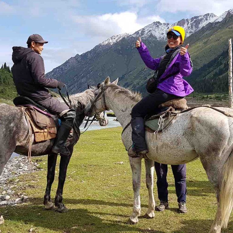 All the time riding along the Jeti-Oguz river until in the afternoon we will return back to same Yurt-Camp.