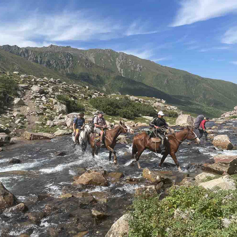 In this Kyrgyzstan trekking adventure you will get the chance to discover a wild region of Tian Shan Mountains. From viewing glaciers to crossing white water rivers, this tour is an unforgettable experience. All supplies and equipment are transported by horses, and there are plenty of opportunities to ride on this trip - you can hike or horse ride.