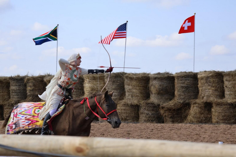 The opening ceremony is one of the most exciting spectacles of the event as competitors on horseback parade around the area brandishing their country’s flags – Kyrgyz, Kazakh, Turkmen, Tajik, Uzbek, Azerbaijani, Mongol, Iranian, Russian, Japanese, Korean - the men dressed in leather armour or traditional garb with the women in flowing medieval gowns - others parade on foot and we remember seeing that somehow a South African tribe had qualified to enter and were doing a war dance in furs whilst also a Scottish contingent clad in kilts had showed up brandishing what looked like very heavy cabers…