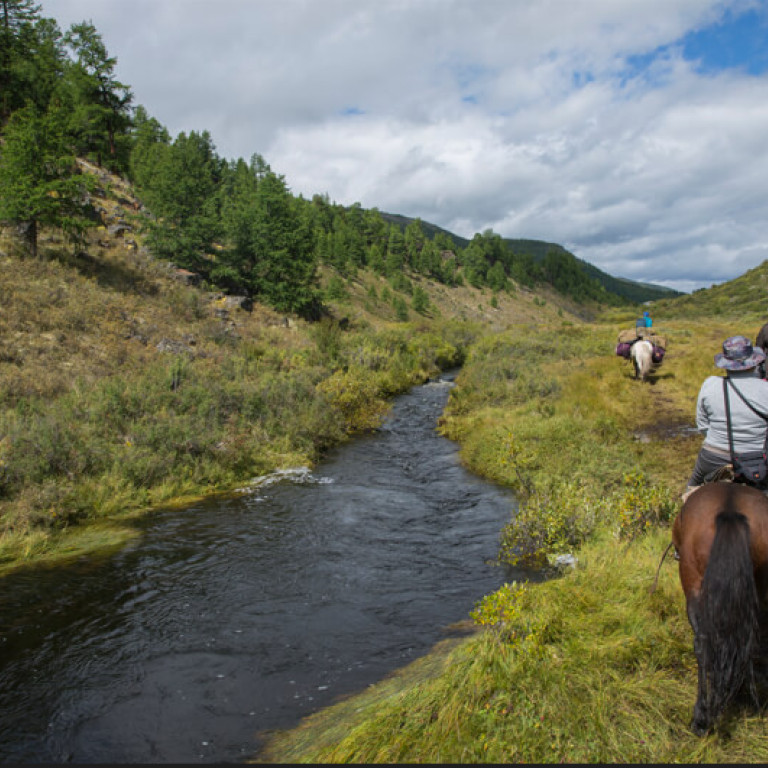 Today we journey north into one of Mongolia’s most remote and culturally rich regions, travelling 210 kilometres into the striking Darkhad Valley. Named after the Darkhad ethnic group, who are known for their deep shamanic traditions, this valley lies tucked between the forested taiga and the dramatic peaks of the Khoridol Saridag mountains. As the landscapes shift from open plains to alpine forests and winding river valleys, we pass nomadic herder families and remote settlements rarely touched by tourism. By late afternoon, we arrive at one of the three isolated villages in the far north, a place where life continues much as it has for generations. Here we meet our trusted horse crew and set up a tented camp surrounded by wild, untouched beauty. There’s time to explore the village, interact with locals and pick up fresh supplies and small gifts in preparation for tomorrow’s journey to the reindeer herders. The day ends around a fire with a nourishing Mongolian meal and the soft hush of nature all around.