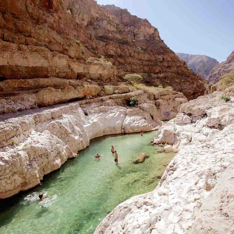 From the incense-filled souks of Muscat to turtle watching on golden sandy beaches; from the sun-bleached mountains of Jebel Shams to the tinkling of water along ancient falaj irrigation channels, hidden beneath lush date palm plantations; from riding camels across the wild red sands of the Wahiba, to walking through the perfect white sands of the 'sugar dunes' to snorkelling in the turquoise ocean of the protected Daymaniyat Islands to the green freshwater pools of the wadis; this is Oman.