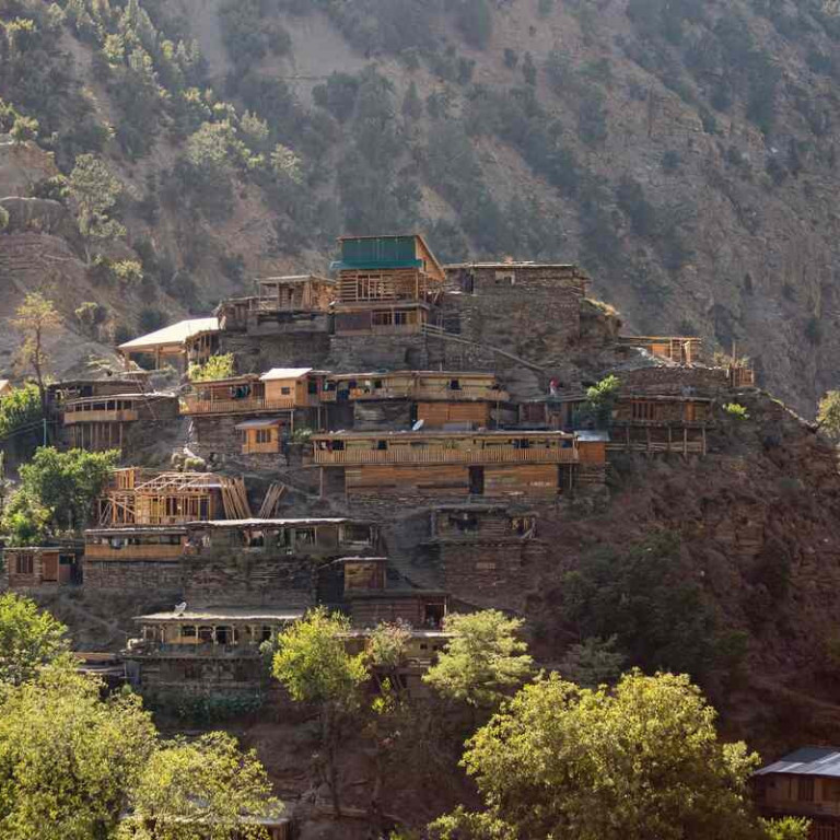 The Kalash people stubbornly and heroically maintain and preserve their traditional lifestyle which is over 3000 years old. The landscape they live on has a wealth of sparkling streams, shady meadows, apricot and walnut orchards, wide mountain ranges and yellow and green farm lands. Kalash architecture is a unique mixture of ancient woodcraft and the medieval traditions of figure art. Kalash buildings typically feature magnificently carved wooden pillars and beams decorated with human and animal figures and effigies – each one depicting a certain myth.