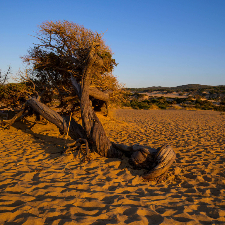 This wonderful oasis far from everything, with imposing and sinuous dunes of fine, warm golden sand that reach up to 60 metres in height, is shaped by the mistral winds and extends several kilometres from the hinterland until diving into the boundless and shimmering blue sea.