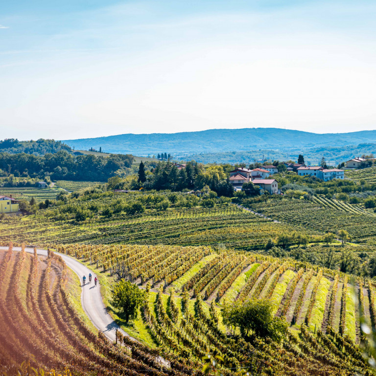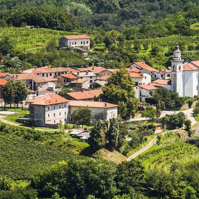 We leave the tranquility of the Komna plateau and return to picturesque Bohinj to pick up our belongings and head south, into the Brda region. We break our 2hr 30 journey at Sabotin Hill Peace Park (609m) on the border between Slovenia and Italy, for incredible far reaching views over both countries. The walking path we take (4kms, 100m ascent) has many points of interest on the way: the church of Saint Valentin, and remains from World War I. The hill itself is arranged as a memorial park / open air museum where you can see the caverns and pyramids that denoted the front lines during the many First World War battles and tragic losses for which this area has become known.