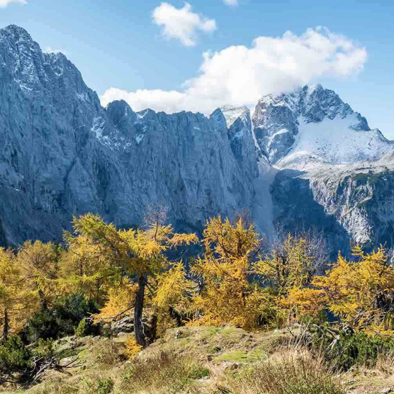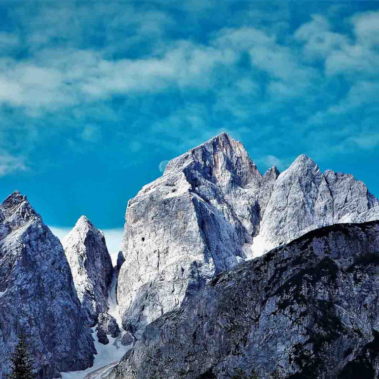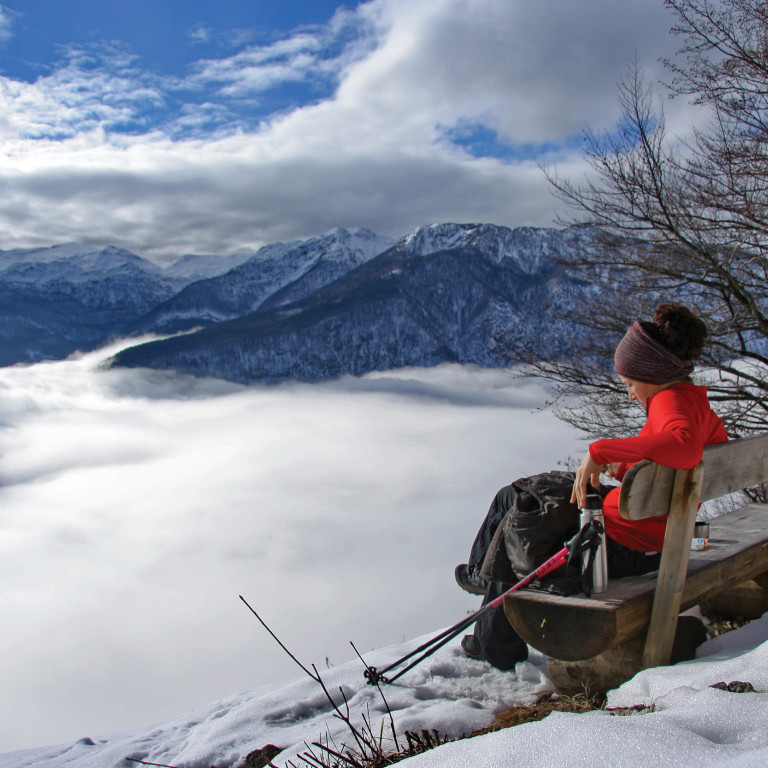 Slovenia is a country of contrasts, and never more so than during the winter months, when the high peaks of Triglav National Park and the thick primeval UNESCO heritage forests of Kocevje are blanketed in snow, yet the lush green valleys of the Brda vineyards below remain bathed in sunshine and warmer temperatures. We embrace the winter in Slovenia; donning snowshoes or popping mini crampons onto our walking boots to explore the achingly beautiful shores of Bohinj lake in the Julian Alps, and to walk into the adjacent mountains for a magical night in a refuge at Komna.