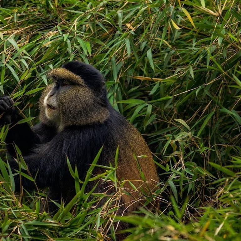 The trail to our first peak is a ridge walk with fantastic views, along the Eastern side of the mountain. Continuing to the second peak offers us breath taking drops into the gorges of Rwanda and Uganda. Our third and final peak is a steep hike with some technical aspects: ladders and some scrambling. Expect to see a diverse range of wildlife during the trek: duikers, Rwenzori turaco and sunbirds, as well as the endemic and endangered golden monkey (Cercopithecus minis kandti). Between 2 and 4000 individuals exist, living in troops of about 100, led by an Alpha male and feeding on bamboo shoots, seasonal fruits, flowers, leaves and small invertebrates.
