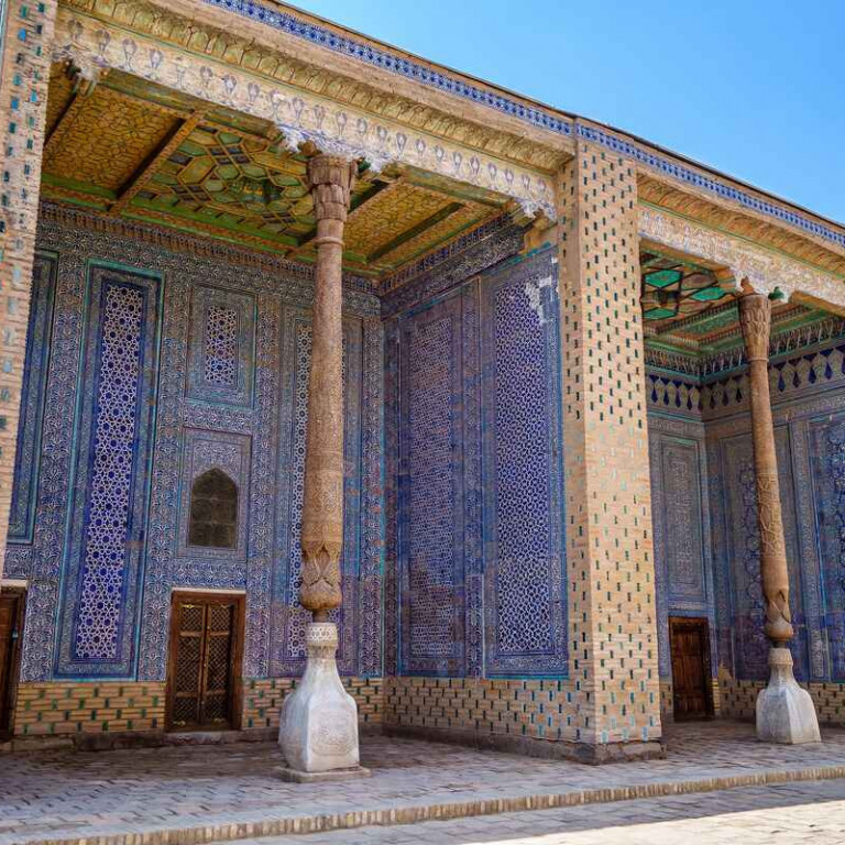 The Bibi Khanym Mosque, named after one of Timur’s beloved wives, is a little further on necropolis of Shakhi Zinda is one of the holiest pilgrimage places in Uzbekistan. The huge gate and 70 m long staircase leads us to the alley between nearly 20 mausoleums. Here we have the finest works in glazed ceramic of Central Asian and Islamic art.