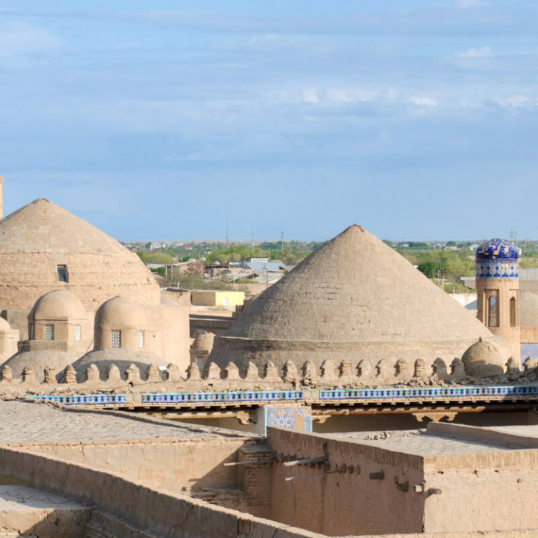 Later proceed to visit the desert forts of Toprak Kala and Ayaz Kala en route to the jewel of a city that is Khiva! (250 km, 4-5 hrs drive). Take a night walk along the ancient streets soaking up the magnificent lighted mosques, minarets and madrassahs, before enjoying a delightful dinner in a local restaurant.