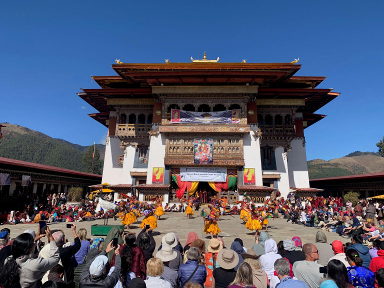 For those who have seen the famous film Spirited Away (highly recommended), the country has the same dreamlike feeling of living in a spirit world. The energy is different and it remains a deeply spiritual country. There have been five kings in Bhutan and the fourth king was celebrating his 70th birthday; welcoming thousands of people (including Modi the PM of India) for a 19-day peace prayer festival in the capital of Thimphu as a giant bronze Budda perched high up on the mountainside looked on serenely.