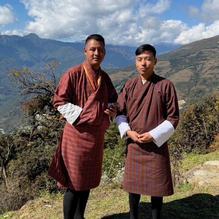[Here pictured are our excellent guide Lhab (left) & friendly driver Ghimpu]